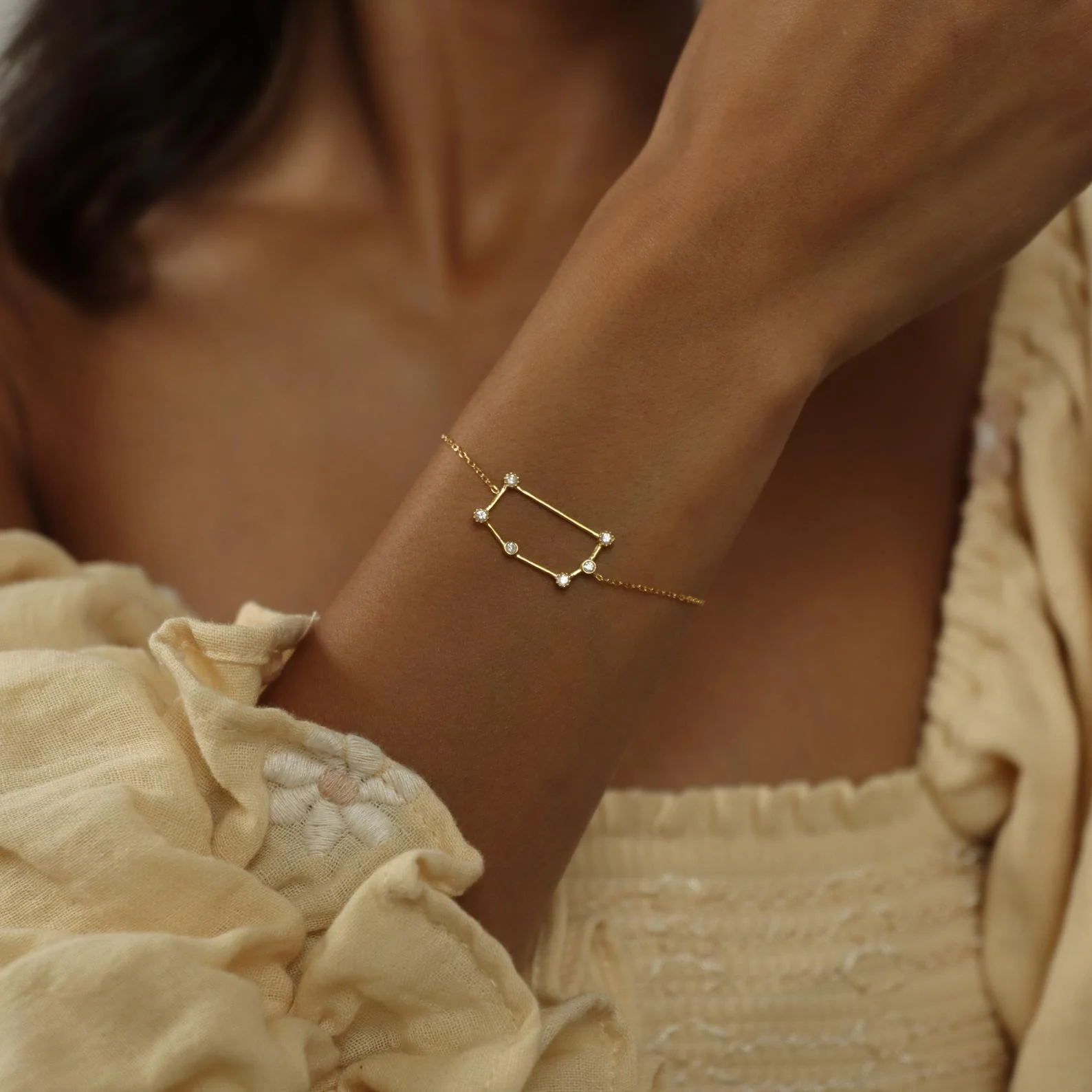The Constellation Bracelet will have you feeling up in the stars. It's the perfect accent to add to your dreamiest of pieces, and its unique yet minimal design will garner compliments from every angle.