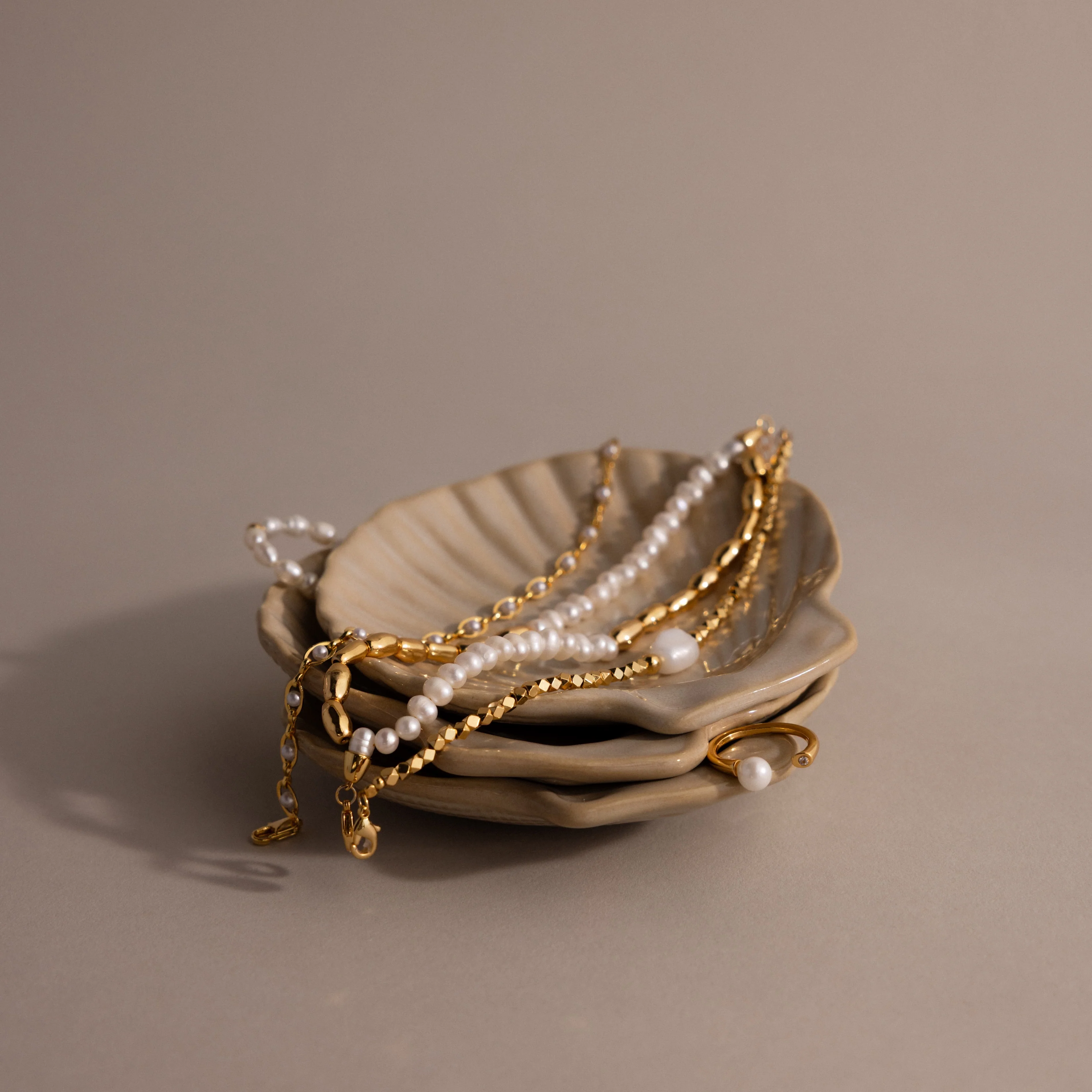 Add a touch of coastal elegance to your vanity with this our Venus Shell Jewelry Dish. Perfect for holding rings, bracelets, and necklaces, its glossy beige finish brings minimalist charm to any space.